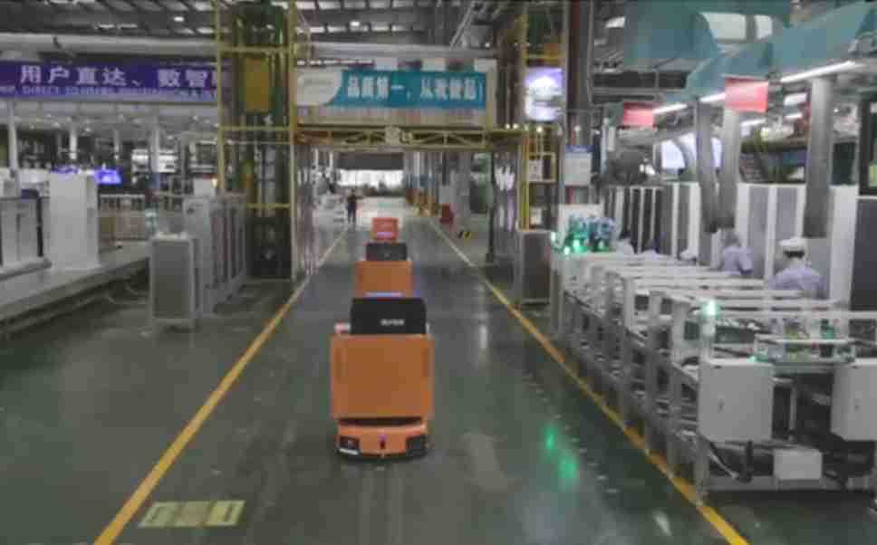 为车载冰箱物流配送打造的智能解决方案,,包含产中物流通过潜伏举升AMR搬运至线边,,产后成品物流智能仓储,,,流程包含产中物流智能齐套入库,,线边安灯叫料AMR智能配送至线边,,,,成品入库、、、出库,,,通过无人堆高车机器人,,,智能仓储管理替代人工作业管理,,,实现更高存储、、、、更高效率、、、更具柔性化的解决方案。。。。